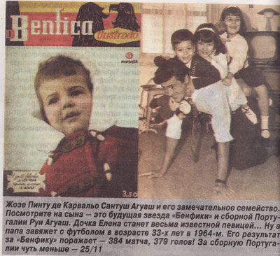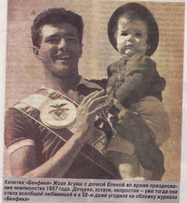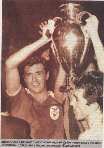Продолжая рассказ о великих футболистах имеющих свои корни в Анголе. Хотел бы остановиться на “Великом Капитане”, как называют его сами португальские болельщики Бенфики. Он приложил свою ногу к первому крупному успеху португальских клубов на евроарене, добыв Кубок Чемпионов. Итак….. В начале 1959\1960 в стане «орлов» обьявилась будующая легенда «Бенфики» Жозе Аугушту. Его футбольный взлет был прямым как стрела. Он родился в Баррейро, его отец играл за «Баррейренсе» и когда понял что сын тоже хочет стать футболистом, был просто счастлив. Он отправил маленького Жозе в родной клуб, и сынуля поначалу делил свою любовь между футболом и баскетболом. Уже 17-летнего Аугушту поставили перед выбором. Он выбрал футбол. Жозе дебютировал в сезоне 1954\55 с сразу стал любимцем публики. С юниорской сбрной Португалии он поехал на турнир в Рим, и после этого за ним начала охотиться «Фиорентина». Главной несправедливостью начавшейся так хорошо футбольной жизни он считал домашний матч против «Спортинга» в 1956 году. Их предупредили – «Спортингу» нужны очки, и «вы же знаете, кто покровительствует «львам»?!» (считалось, что диктатор Португалии Салазар болельщик «Спортинга»). Аугушту сделал в этой игре хет-трик, но один из его мячей не был засчитан, и «Спортинг» победил.  Вскоре все игровые переживания отошли на второй план. Тяжело заболел отец, нужны были деньги на лечение, и молодое дарование готово былоуйти в ту команду, которая больше заплалтит. 25 августа 1959 года Аугушту подписал контракт с «Бенфикой». Больше всего его впечатлило то, что «орлы», в отличие от других, предлагавших не меньше, а то и больше («Порту»), еще до подписания сообщили парню: «Счет за лечение отца уже оплачен. Теперь поговорим?» Уже первого сентября Аугушту в красной футболке «Бенфики» вышел на игру. Цвет футболки, в конце концов, такой же, как и у его родного «Баррейренсе»…. Он очень долго шел к этой цели. Агуаш родился в Анголе. Его отец Рауль подался туда в поисках заработка, да так и застрял. Жозе рано лишился матери, и отец, забрав сына из школы, устроил тогда 15-летнего парня помошником в представительство(так теперь это называется) «Форда». То есть он считался секретарем директора. В свободное от работы время Агуаш гонял мяч и мечтал стать таким же забивалой, как его кумир «бенфикиста» Рожериу. Предания гласят, что после завоевания Латинского Кубка «орлы» приехали в Анголу отдохнуть и сыграть пару показательных игр с местными. (Не пару, а 15, и и продолжалосб это с 25 июля по 4 сентября, на секундочку! «Бенфика» побывала в Анголе, Трансинваале, всяких Конго… И хронисты гордо говорят – да, мы приграли чемпионам с треском, уступив «Спортингу» 15 очков, но зато мы встретили в Анголе охотника на львов, в свободное время поигрывавшего в футбол… Жозе Агуаша, и это было гораздо важнее, чем какой-то там чемпионат страны! Команде Лобито «Бенфика» проиграла 1:3, и два из трех мячей забил белый парень, которого звали Жозе Агуаш. Руководители приезжих записали фамилию, и пообещали вызвать, если понадобится.  Агуаш взял отпуск, использовал разовый бесплатный проезд в метрополию и отправился в Португалию. В «Бенфике» его взяли к себе, только когда узнали, что толковым хлопцем интересуются «Порту». Молва всегда бежит впереди…. Агуаш играл и забивал при Эдварде Смите, и при Рибейру душ Рейше. Он был любимцем (